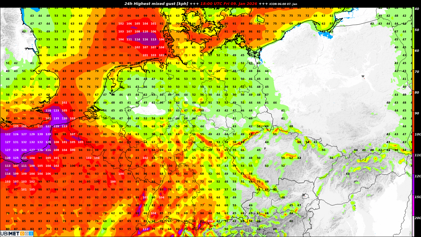 Das Tief ist zwar klein, die Druckgegensätze zu den umliegenden Hochdruckgebieten sind aber durchaus markant, somit wird auch Sturm ein Thema werden. Besonders im Südwesten des Landes, sowie an den Küsten von Nord- und Ostsee. In den Hochlagen des Schwarzwaldes sowie des Pfälzerwaldes sind durchaus Böen bis zu 100 km/h zu erwarten. Der Wind wird im Norden und in den höheren Lagen der Mittelgebirge bei den erwarteten Neuschneemengen auch zu einigen Schneeverwehungen führen. Etliche Verkehrsbehinderungen sind somit in diesen Regionen zu erwarten.