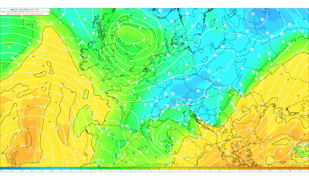 Generell hat sich eine schwache Westwetterlage aufgebaut, mit der nun die Bedingungen für die Bildung eines Orkantiefs gegeben sind. Dieses zieht vom Ostatlantik nach Mitteleuropa, wie die folgende Animation zeigt.