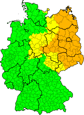 Ganz beständig bleibt es jedoch nicht überall. Ein kleinräumiges Gebiet mit Gewittern lässt sich bereits jetzt am Vormittag vom Sauerland bis zum Taunus erkennen. In Gießen hat es bspw. 23 l/m² in der Stunde von 10 bis 11 Uhr geregnet. Im Vorfeld des Westeuropatiefs bilden sich in den rot markierten Regionen am Nachmittag vermehrt Quellwolken und einzelne Hitzegewitter, primär über Bergen. Wie schon in den letzten Tagen gilt: Aufgrund nur langsamer Verlagerung können diese vor allem große Regenmengen bringen und ganz lokal zu Überflutungen führen.
